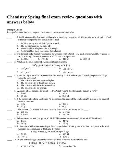 Free PDF Chemistry Spring Final Exam Review With Answers Doc Internet Archive